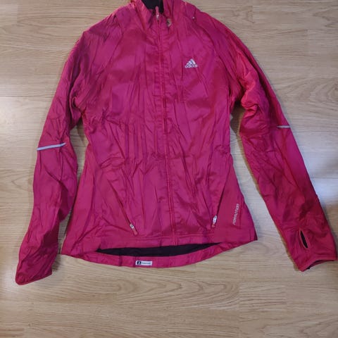 Kuvanmukainen siisti juoksutakki,sivussa vetskaritaskut.kainalo-kainalo mitta noin 49.sm