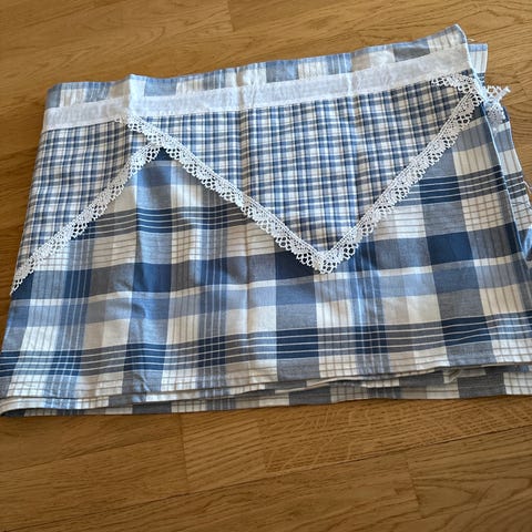 Ammattilaisompelijan tekemä verhokappa, leveys 154cm.
