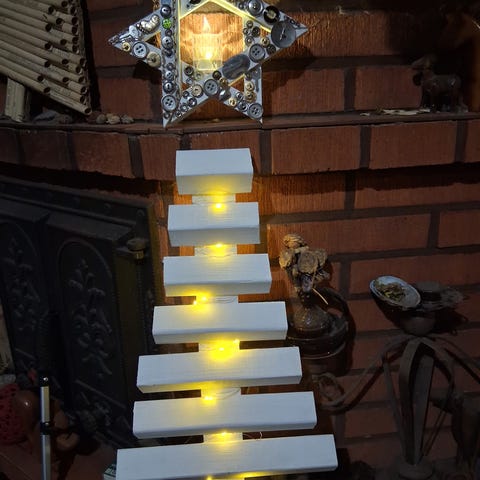 Myytävänä vaaleanharmaa ja musta lasitettu keraaminen joulukuusi.