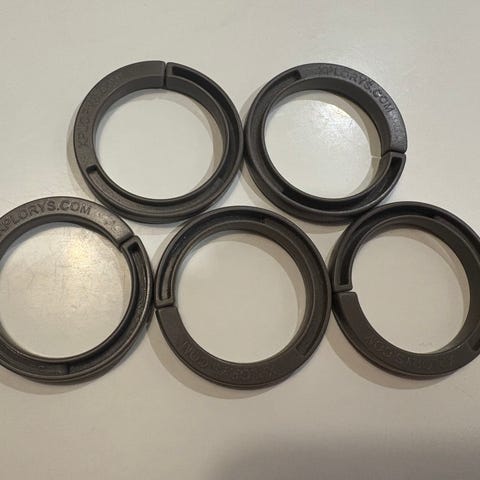 6 kpl mustia vaunuverhon renkaita. Yht 5€.
