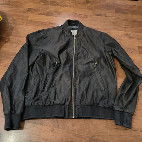 Makia Takki mustassa värissä, koko S. Takki on suunniteltu miehille ja sopii ulkokäyttöön. Materiaali ja yksityiskohdat kuvissa osoittavat kestävän ja lämpimän rakenteen, jossa on tekoturkisvuori kauluksen ympärillä.