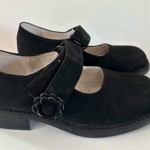 Myyn tyttöjen käytetyt mustat juhlakengät. Kengät nahkaa. Myös sisävuori ja sisäpohjallinen nahkaa. Ulkopohja kumia. Kengät ovat täysin ehjät ja siistit. Hieman jos sipaisee lankkia niin saa oikein siistit kengät näistä. Hyvät jalassa!