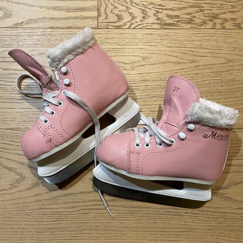 Kitty lasten kaunoluistimet, koko 27. Väri valkoinen. Luistimissa ei ole kaunoluistimille tyypillisiä piikkejä terän etuosassa. Luistimissa nauhallinen kiinnitys. Kunto ok, menee vielä seuraavalle pienelle käyttäjälle.