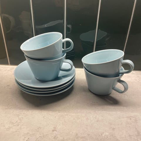 Arabia Koko kahvimukit eri väreissä. Mukit ovat posliinia ja soveltuvat kahvin tai teen tarjoiluun. Mukien värit vaihtelevat, mukana sininen, vihreä ja kelta-oranssi kukkakuosilla.
