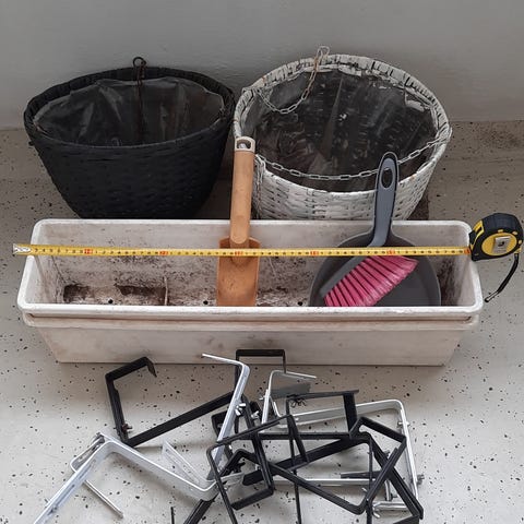 taimi-ruukku on pienet reiät vedenpoistoa varten.Niitä on 7 mustaa ja 5 valkoista. Ne ovat 56 cm pitkiä ja 31 cm leveitä, ja maksavat 2 euroa kappale.