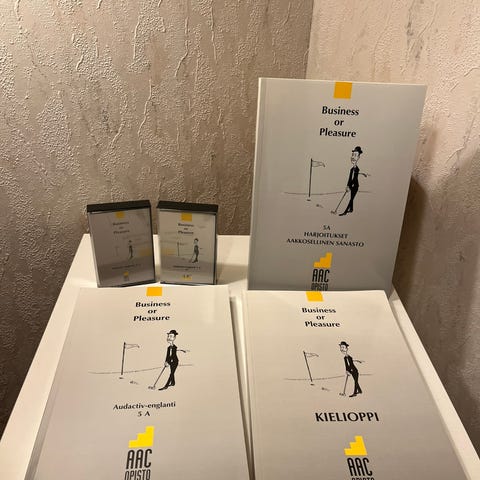 Kansissa joitakin jälkiä. Kielioppi-kirja siisti.