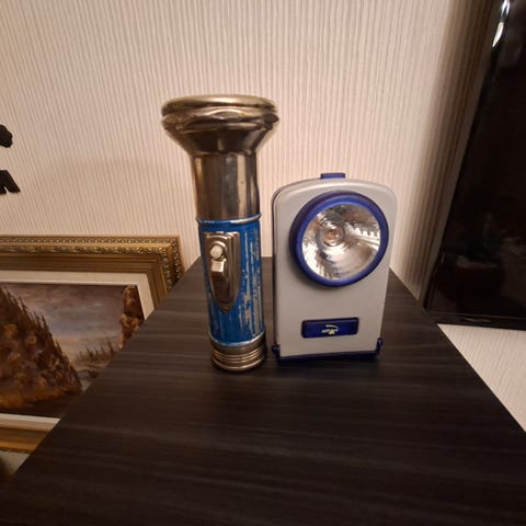 Vanhoja taskulamppuja + lampputeline polkupyörään.