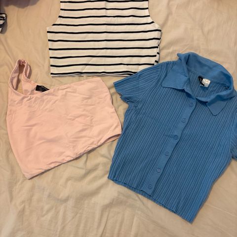 Naisten toppeja ja yksi T-paita settinä koossa S. Pinkki Zaran yksiolkaiminen toppi koko M mutta menee S -koosta. Suurin osa käyttämättömiä tai muutaman kerran päällä ollut. Merkit Zara, Lindex, H&M ja Vila.