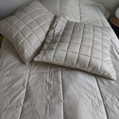 Ellos Home peitto, paksuus Medium. Päällinen 100% puuvilla, täyte 100 % polyeterikuitua. Väri valkoinen, materiaali hengittävä ja pehmeä. Sijainti Porvoon Hamarissa. Uuden hinta 127.