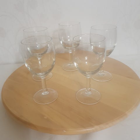 Siistikuntoiset viinilasit 5kpl, lasin korkeus 7cm. Kaikki yhteensä 8€. Sijainti Pataluodossa Rantakylässä.