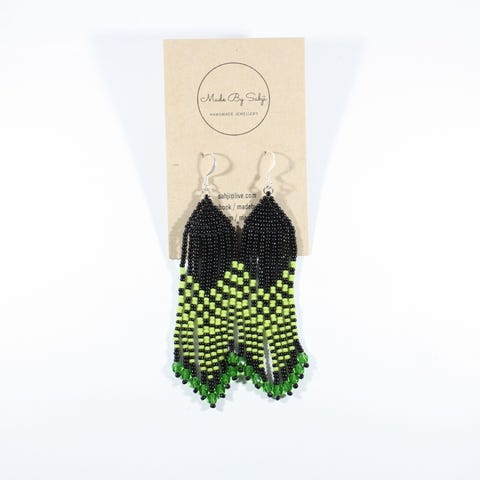 Käsintehdyt roikkuvat musta beiget korvakorut | Made By Sahji