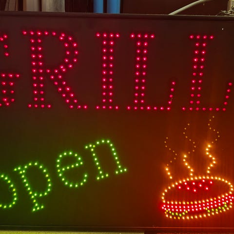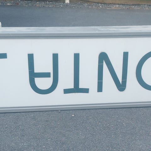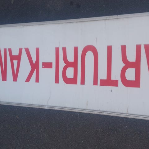 Iso ja näyttävä, hyvin näkyvä kyltti.