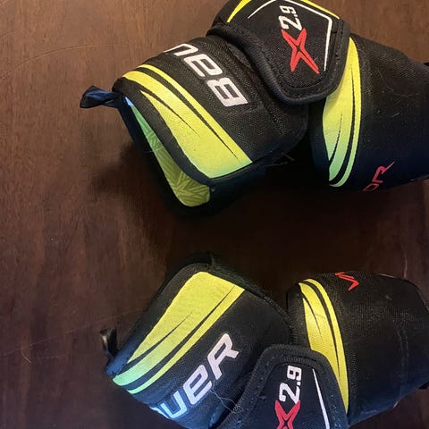 Myydään kerran testatut Bauer Vapor Flylite kyynärsuojat. Koko SR L. Teetetty suutarilla remmeihin lisäpituutta, helppo poistaa tarvittaessa.