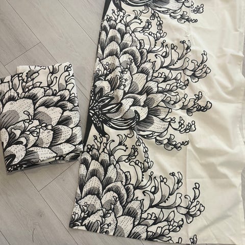 4 kpl Vallilan Memento kankaasta ommeltua verhoa.
