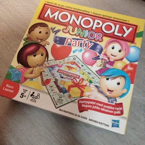 My Monopoly Lautapeli sisältää pelilaudan, pelinappulat, rahapaperit ja peliohjeet. Lautapeli on suunniteltu mukautettavaksi omien sääntöjen ja pelialueiden mukaan. Sopii perhe- ja ystäväpeliksi. Hyväkuntoinen. Nouto tai postitus.
