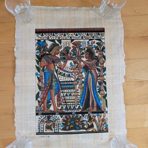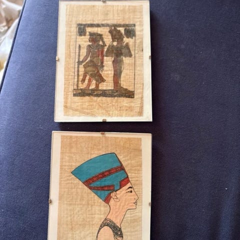 4 kpl Egyptiläisiä papyruskuvia, hinta yhteensä 60,-, voidaan myydä myös kappaleittain a' 15,-