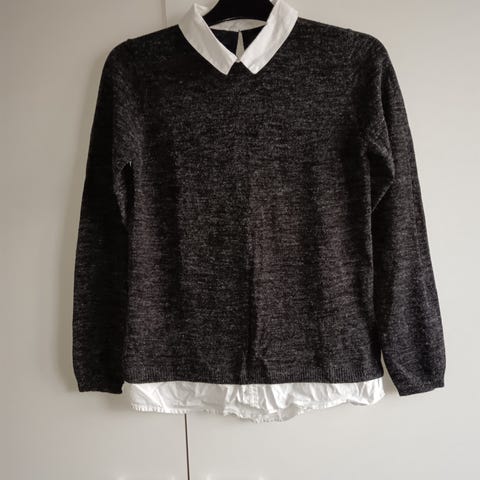 Harmaavalkoinen Esmara neulepaita kivalla helmalla kokoa 40/42