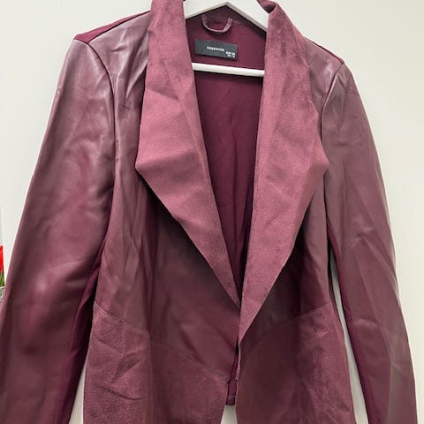 Punainen naisten bleiseri, koko 36. Soveltuu erilaisiin asukokonaisuuksiin ja tilaisuuksiin.