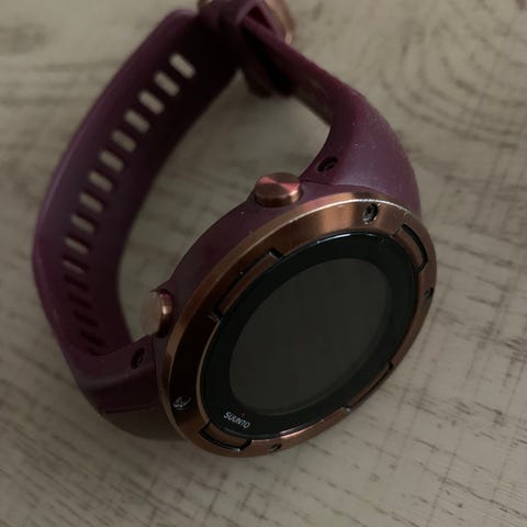 Hyvässä kunnossa oleva GPS kello, ei jälkiä tai naarmuja. Rannekkeen toinen pidike on hieman murtunut, mutta ei ole haitannut menoa ja halutessa rannekkeen voi vaihtaa.
