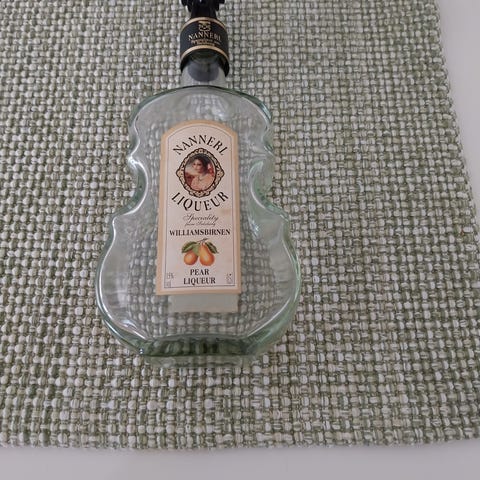 Neljä likööripulloa. Pohjassa Karhulan lasitehtaan merkintä K3, K3, K4 ja K6.