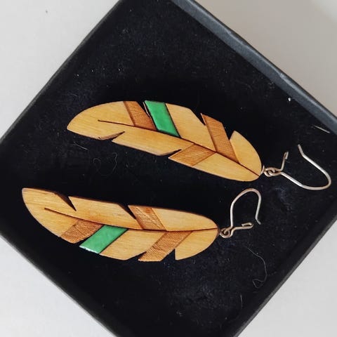 Puiset design korvakorut. Koko noin 6cmx3cm. Virheettömät. Nouto, käteisellä.