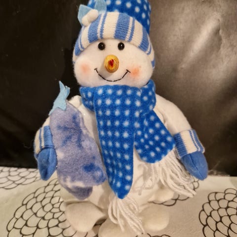 Kynttilälyhty lumiukko. Korkeus noin 15 cm. Ehjä