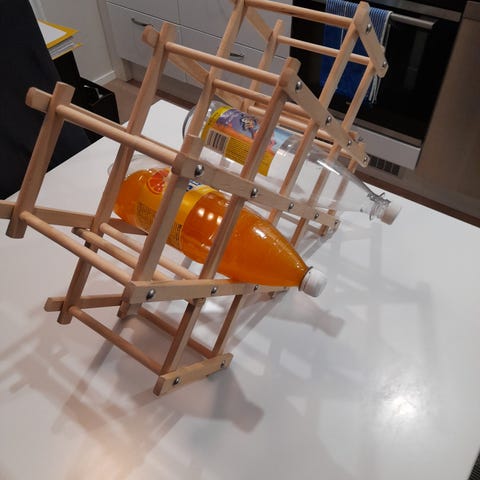 Vanha viinipullon tarjoiluteline yhdelle pullolle, metalli/muovipunos.