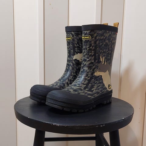 Vuorelliset Viking kumisaappaat. Vuori kulunut rikki kantapään kohdalta. Koko 35
