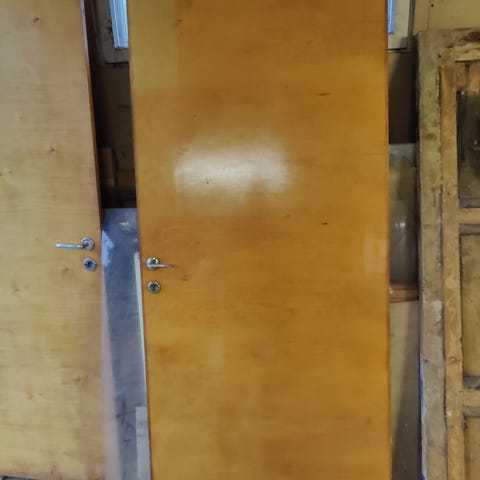 2kpl ikkunallinen ovi, josta ikkunalasit uupuvat. Toisessa kahdelle kapealle lasille kehys ja toisessa leveämmälle lasille kehys.