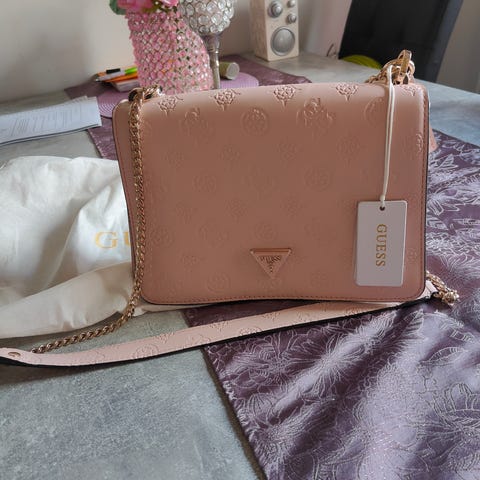 GUESS Naiset laukku, musta väri, valmistettu nahasta. Laukussa on ketjuhihnat, vetoketjutasku ulkopuolella ja sisäpuolella useita taskuja. Sisävuori on vaalean sävyinen, jossa GUESS-logoja. Sopii arkipäivän käyttöön ja erilaisiin tilanteisiin.