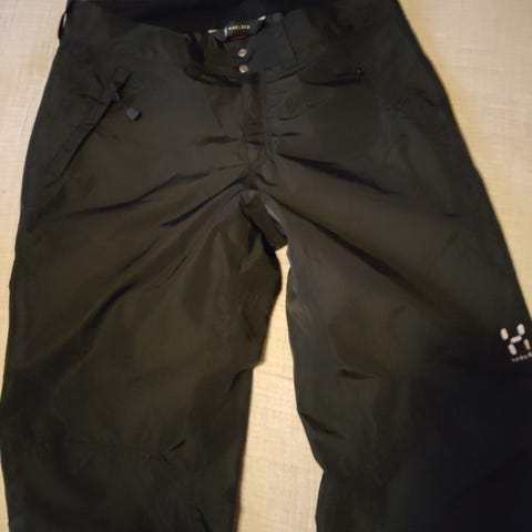 Haglöfsin naisten kuorihousut koossa S. Sisäpuolella kangas/verkkokangas, joten mukavat käyttää. Taskuja kaksi edessä ja yksi takana. Vyötärö hieman joustava ja vyölenkit löytyy. Lahkeissa vetoketjut ylttävät polven alapuolelle, lahkeissa myös kiristysremmit ja neppari.