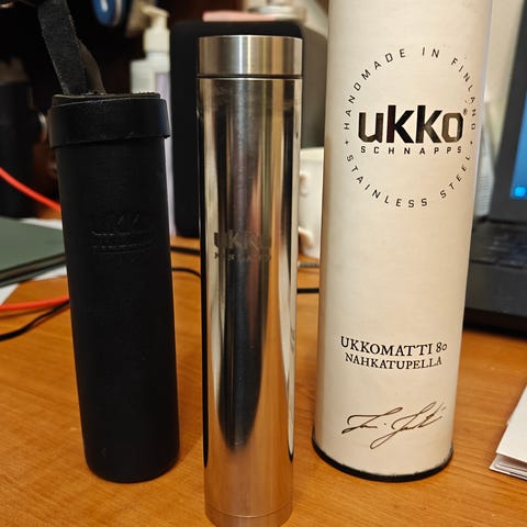 Ukkomatti on meijeriteräksestä valmistettu tankki jalojuomille. Ainutlaatuinen, luonnossa mukana taivaltava rohkaisuryypyn mahdollistaja. Naukku Ukkomatista luo reissun kohokohdan. Hyvä lahjaidea vaikka joululahjaksi miksei syntymäpäivälahjaksikin.