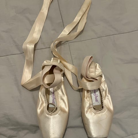 Grishko merkkiset vaaleanpunaiset balettitossut, koko 40: "Grishko dream stretch". On käytetty jonkin verran ja pohjissa jälkiä siitä. Maksaa Piruetissa 29,50€.