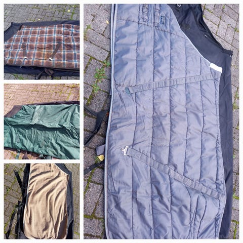 Highneck, toppaus arviolta n. 150g, lappu kulunut, ei näy tietoja. Koko 5'6. Toista mahavyötä korjattu, näkyy kuvassa, ja vähän likainen, muuten hyvässä kunnossa. Kevyt loimi, pitänyt vettä hyvin.