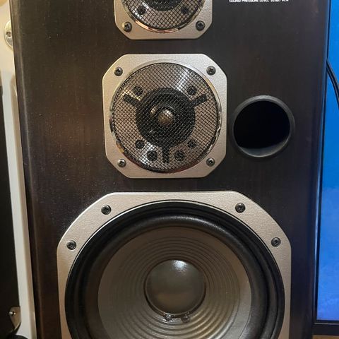 Noin metrin korkuiset Yamahan tornikaiuttimet, joissa on bi-amp mahdollisuus. Täysin toimivat ja kokonaisuudessaan hyväkuntoiset, mutta "oikeasta" kulmasta katsottuna naarmuja näkyy. Myös yksi liittimien välinen kappale korvattu itsetehdyllä.