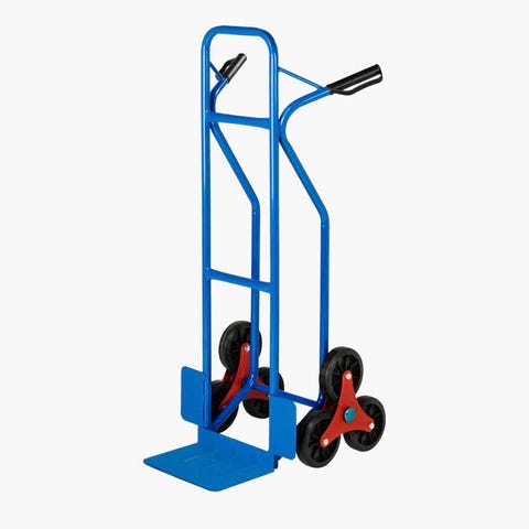 Bilteman porrasmallinen nokkakärry esim jääkaappien, pesukoneiden ym siirto portaikossa. Kolmipyörärakenne helpottaa kulkua portaissa ja epätasaisilla pinnoilla.