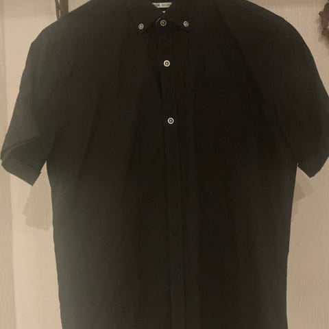 Musta kauluspaita, koko M. Materiaali 55% puuvilla, 45% polyesteri. Kaulus 41 cm, vyötärö 102 cm.