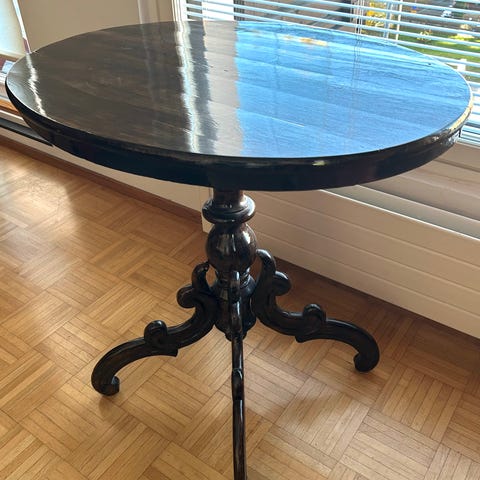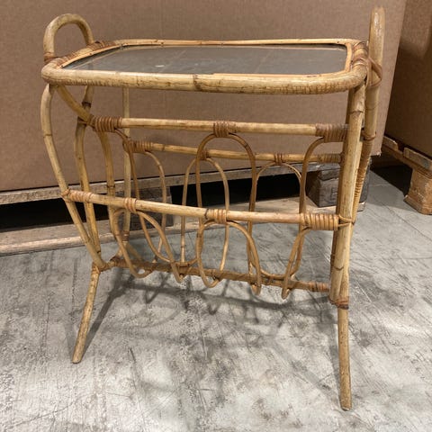 Rottinki musta pieni tarjotin pöytä, jossa lasinen yläpinta ja kaksi tasoa. Sopii esimerkiksi olohuoneeseen tai terassille tarjoilupöydäksi tai koriste-esineiden sijoittamiseen.