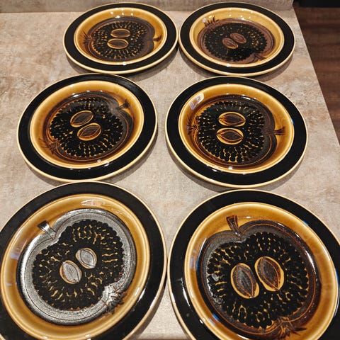 Arabia Fructus lautanen ruskea 20cm x8 - 15e/kpl tai 100e yhteensä (Nämä lautaset ovat tosi hyvässä kunnossa!)