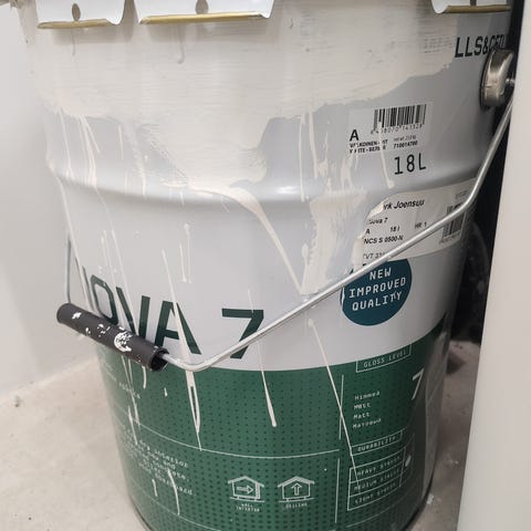 Avaamaton 9L pönikkä himmeä sisämaalia, sävytetty Tikkurilan harmaalla deco grey sävyllä. Ovh 95e.