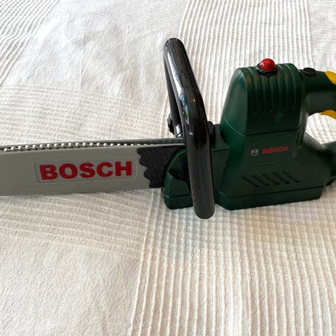 Myydään Boschin leikkimoottorisaha ja leikkisuojalasit. Paljon leikitty, laseissa naarmuja ja sahasta lähtenyt ketju irti (näppärä voinee korjata). Ääni toimii ja se oli ainakin meillä tärkeintä. Nouto Viherlaaksosta.