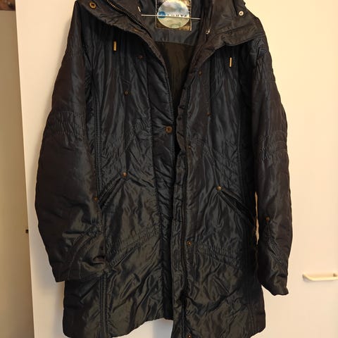 Vintage toppatakki, Suomessa valmistettu by Luhta. Kokomerkintä 36, mutta menee mallin ansiosta noin S-L välillä. Ihanan muhkea ja lämmin kylmiin ja kosteisiin säihin! Väriä hankala saada kuviin, punaruskea.