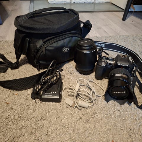 Myynnissä Olympus E 400 digijärkkäri + 14-42 mm 3.5-5.6 ED objektiivi.