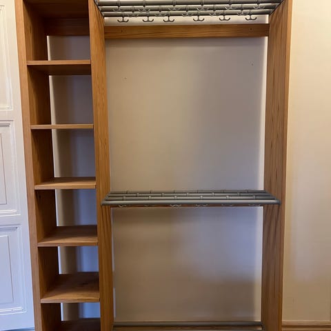 Täysin ehjä vaatehylly: koukut, tanko ja hattuhylly Tukevarakenteinen. Saa seinään kiinni Voin tuoda lähialueille kympillä