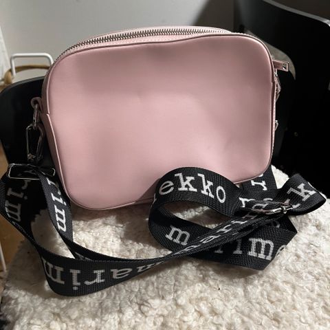 Marimekon vaaleanpunainen Gratha laukku. Vain muutaman kerran käytetty todella siisti laukku. Ainoa kauneusvirhe on pienet vaaleat painaumat/naarmut toisen sivun alanurkassa(kuva2.).