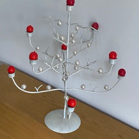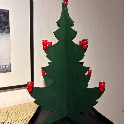 Myydään kaunis kynttiläkuusi, jossa paikat neljälle kynttilälle.