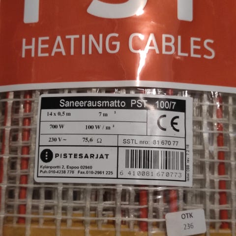 Myydään lattialämmityskaapelia. Kolme kelaa, eri mittaisia. Koko 16/2 mm.