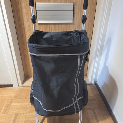 Vedettävä ostos kärry, kerran käytetty hyvä veto kärry. Isot pyörät, ja viisi taskua.
