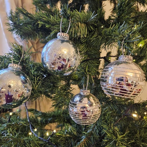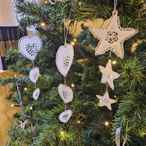 Joulukoristeita ja kuusi
