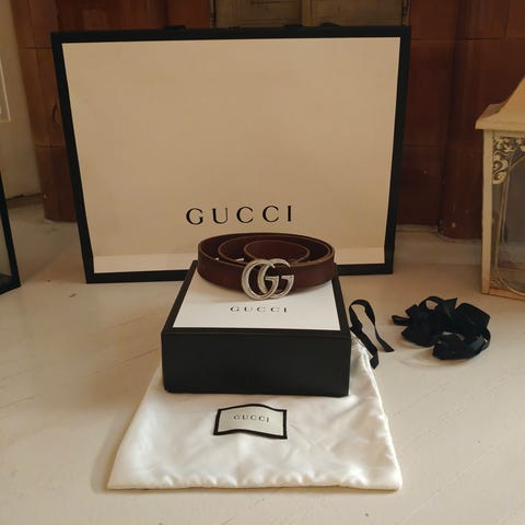 Kerran kokeiltu Guccin vyö koossa 90/36. Leveä malli. Boxi,kassi, dustbag ja kuitti mukaan.